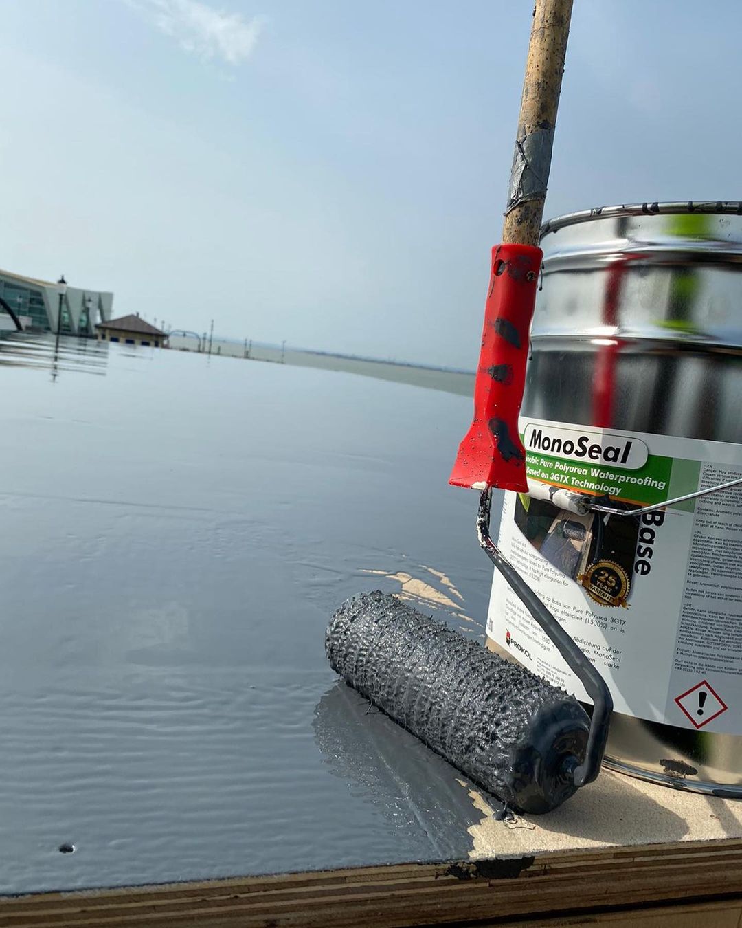 ادهن مادة البوليوريا الباردة(مونوسيل) برولة الدهان او بفرشاه